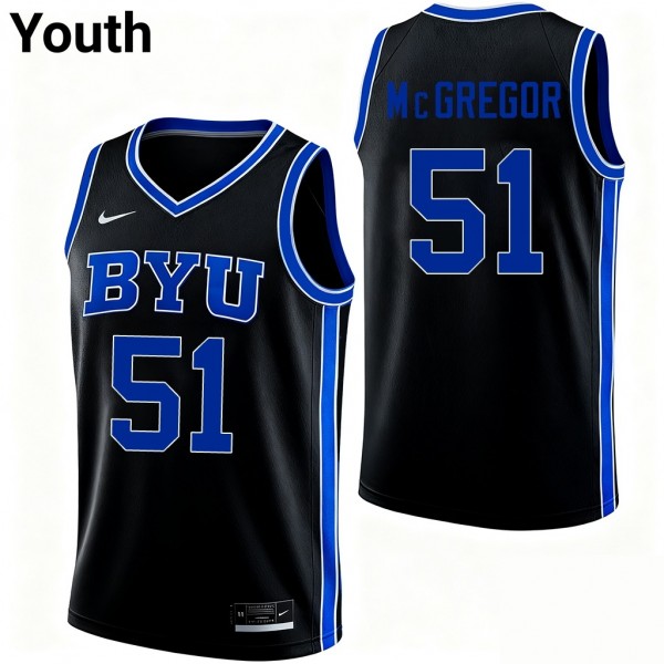 • Youth Jared McGregor Black BYU #51 Embroidery Jerseys
